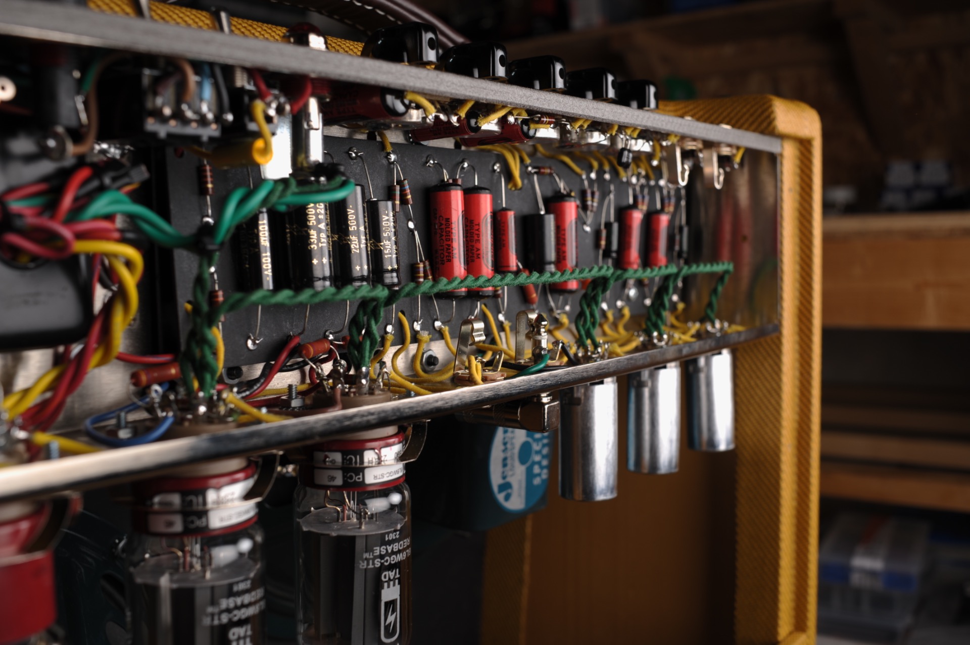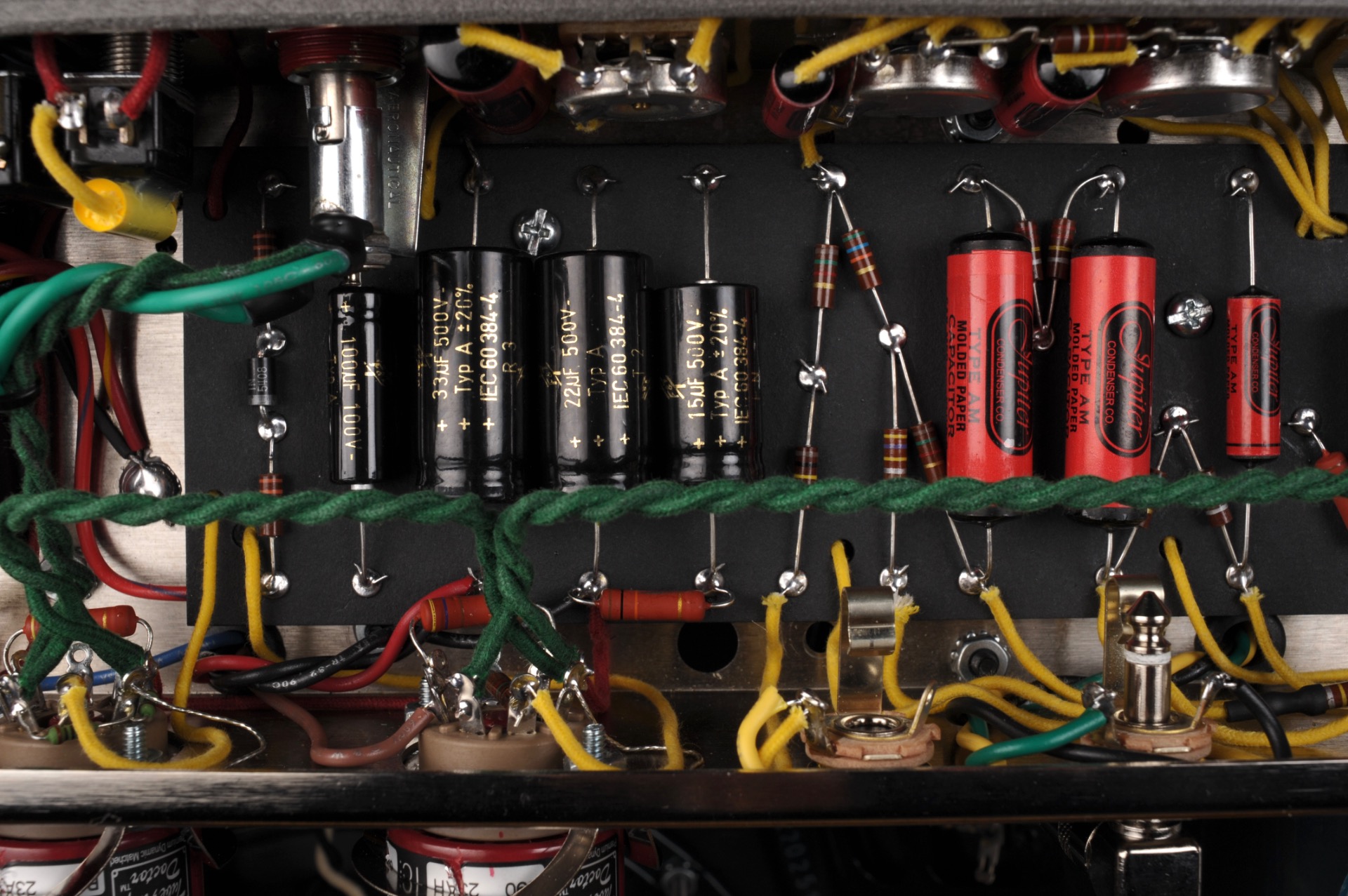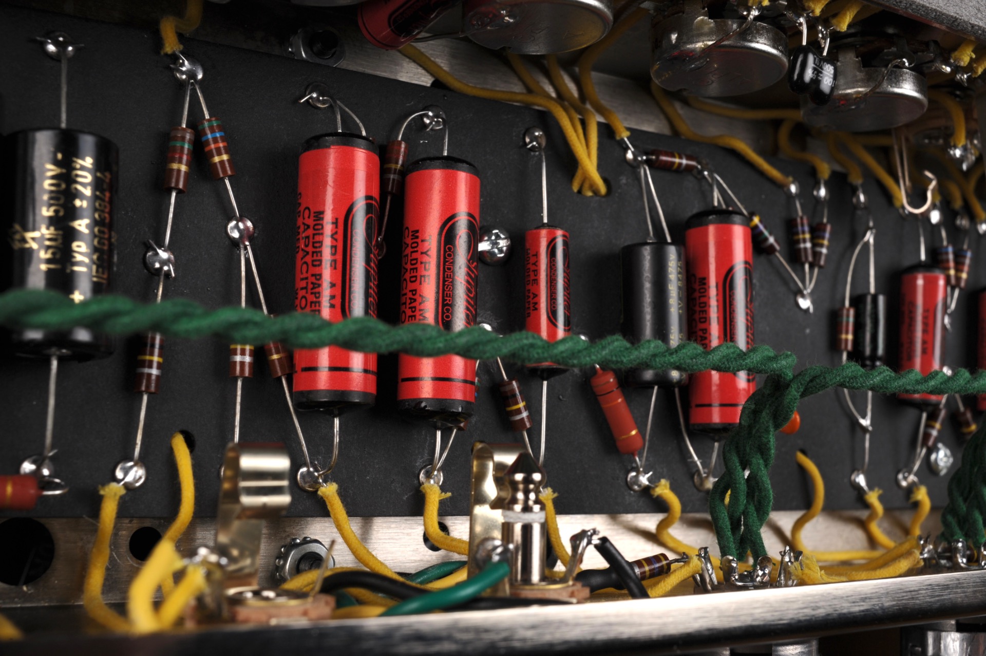 Tweed Super 5f4 til salgs! Denne er nettop bygget på verkstedet, og er klar for en som ønsker seg noe helt spesielt. Denne gir 27 cleane watt og 38 overstyrte watt. Forsterkeren er satt opp med F&T (store) og sprague (små) elektrolyttkondensatorer, fullt kit med Jupiter «red astron» kondensatorer, belton rørsokler og rørclips, carbon kompositt-motstander, og 2 stk 10 tommer jensen alnico høyttalere. Kabinettet er håndbygget i usa, er fingerskjøtt og er i heltre.